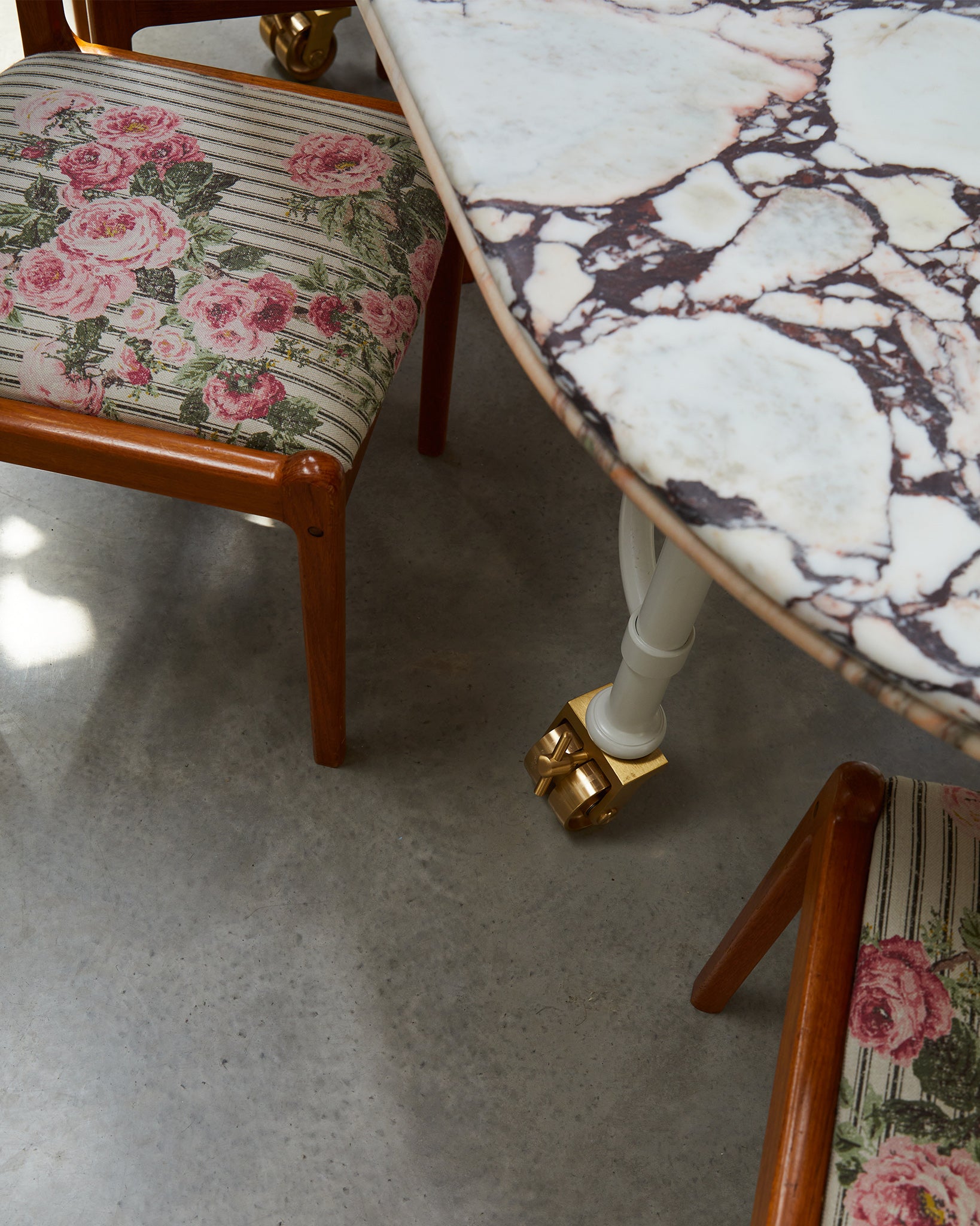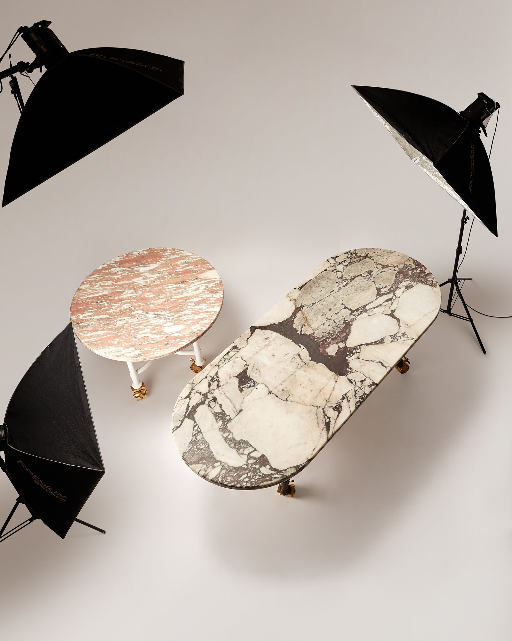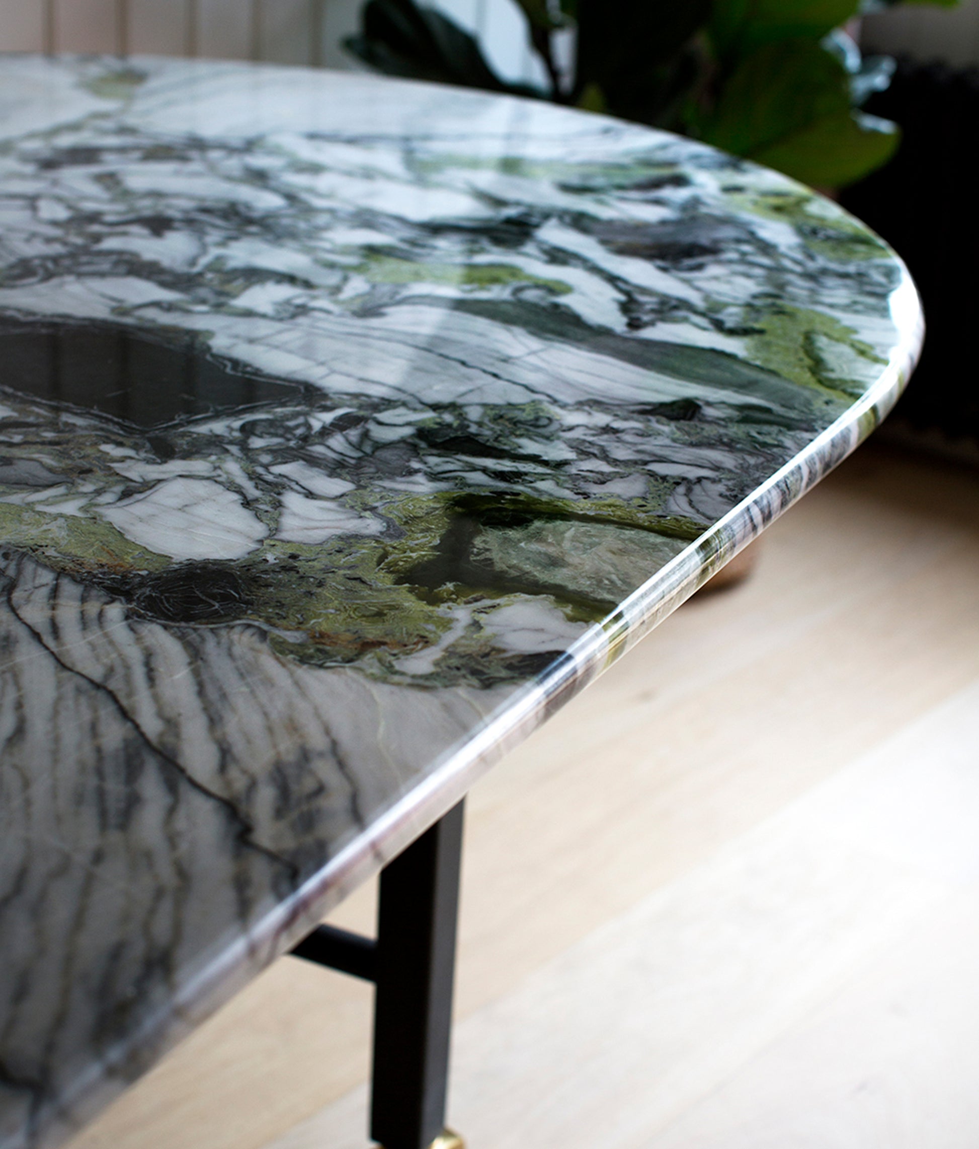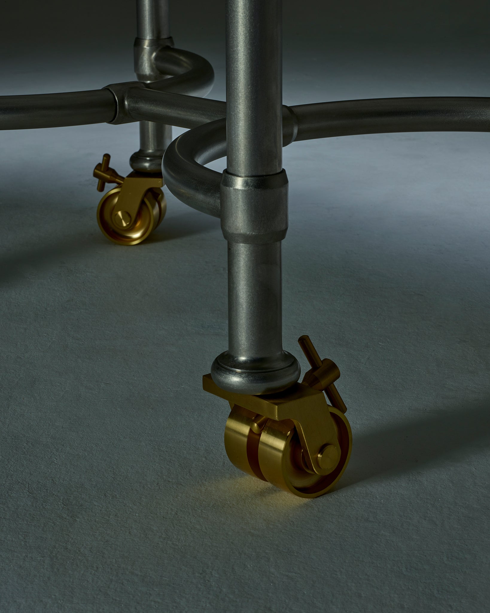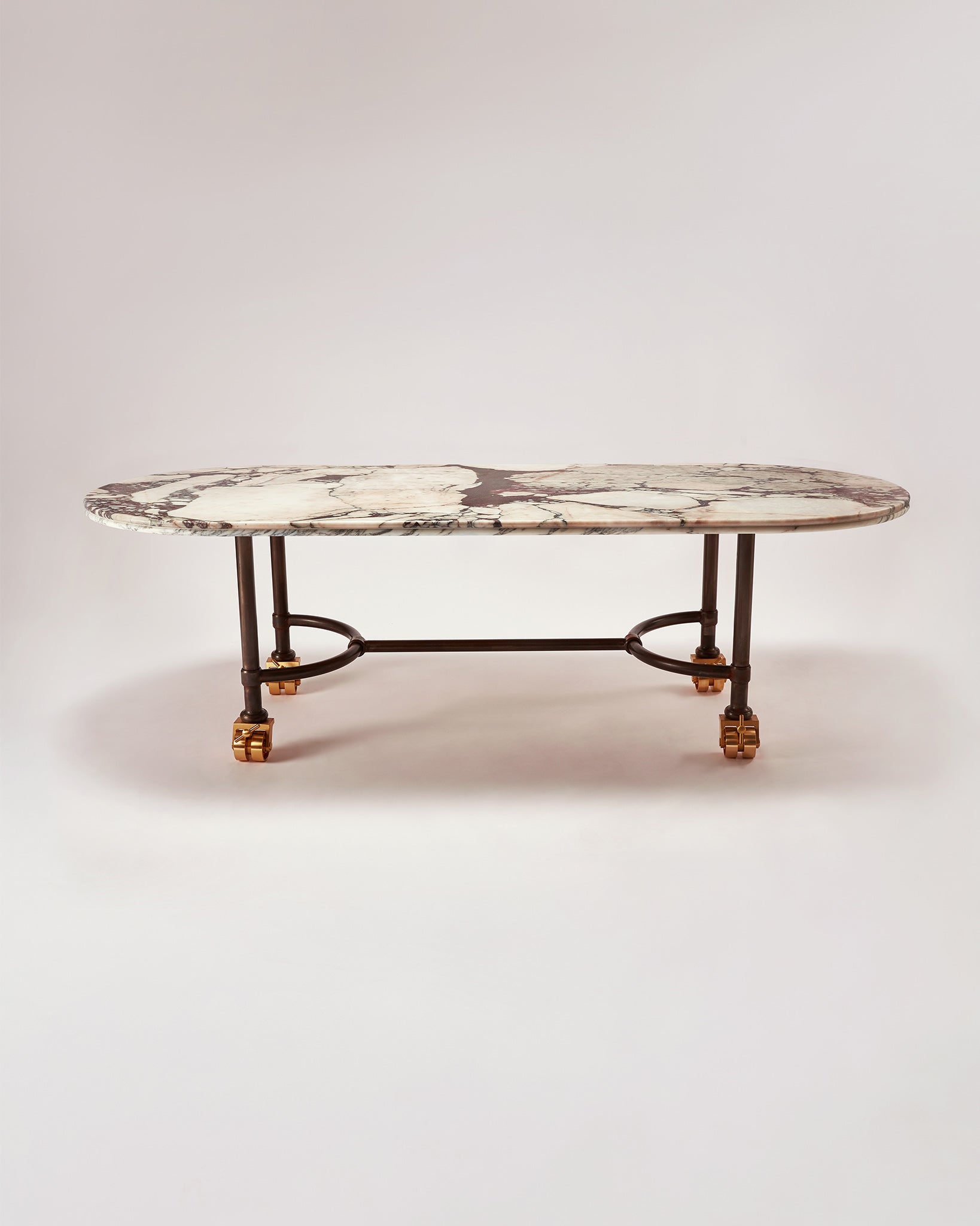 Based on a design for an early Buchanan Studio project, the Muse Table has been refined and iterated over the years and has found its way into many of the studio's interiors projects due to its versatility and the vast array of possibilities with material choices. As such, it has become the studio's ‘muse’. Available in either a circular or oval shape, made to (almost) any size, with Buchanan Studio's signature double-bullnose edge, and playful oversized solid brass wheels. The top can be produced in a wide variety of unique and rare marbles, natural stones, and travertine.