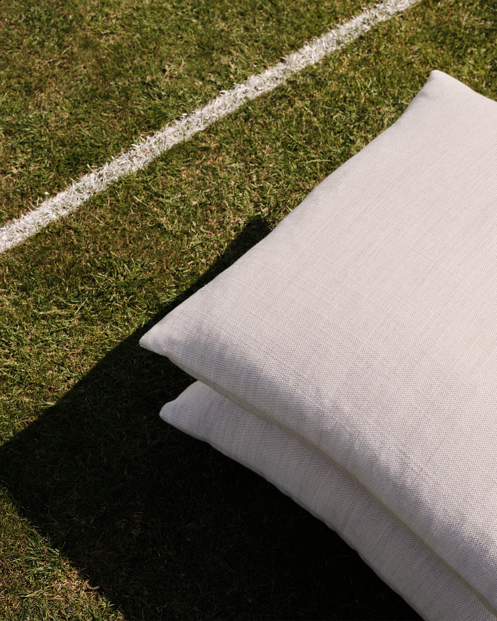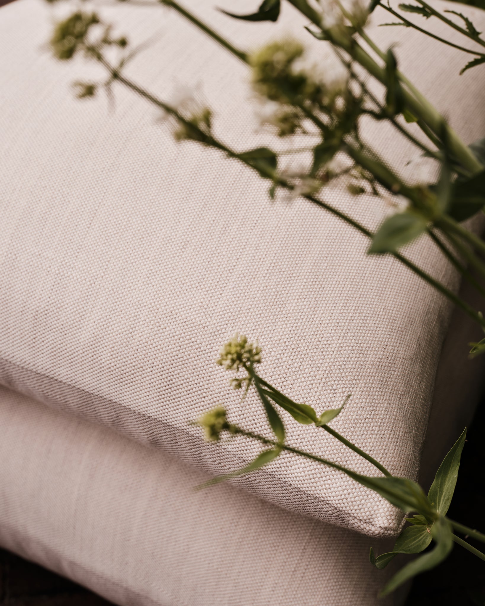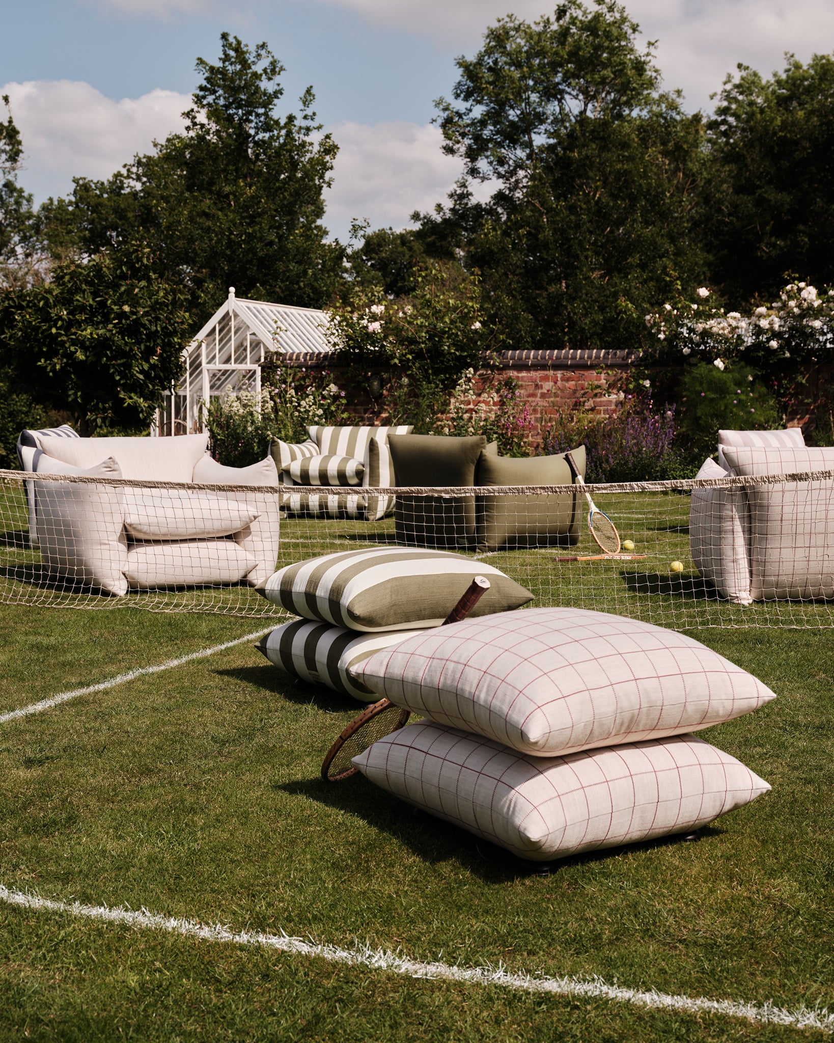 Upholstered in our Wild Plains, in Khaki and Chalk- an indoor/outdoor performance textile. Woven in Italy from 100% Trevira CS, combining design and comfort with high performance. Unlike many acrylic outdoor fabrics, Trevira offers a soft, tactile feel, reminiscent of natural yarns, making it equally suited to interiors and exteriors alike. This fabric offers water repellence, mold resistance, fade resistance, stain resistance, superior light fastness, and durability - without compromising on colour, character, or comfort.