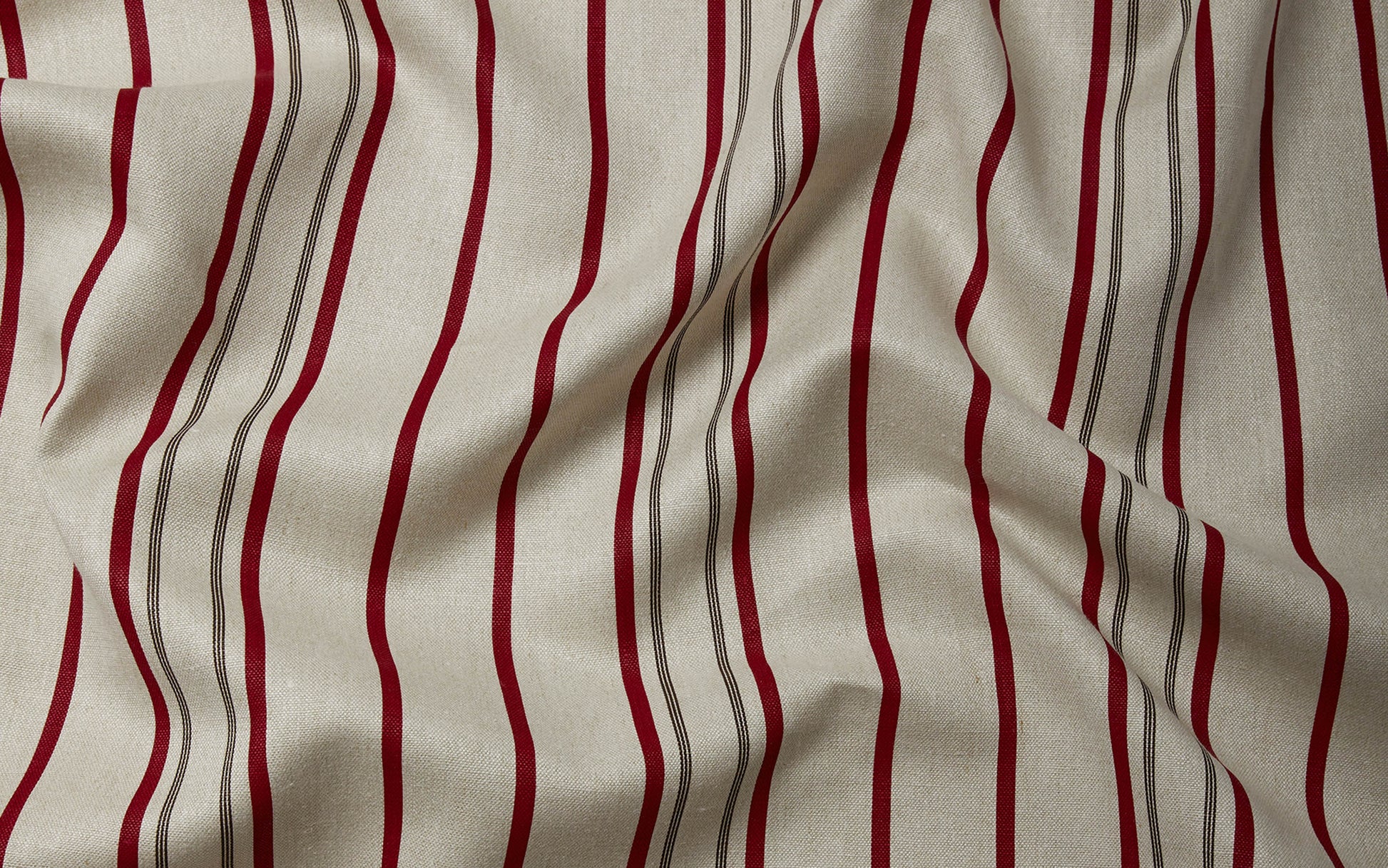 'Bordeaux' combines a deep burgundy red stripe with a fine dark brown pencil stripe
