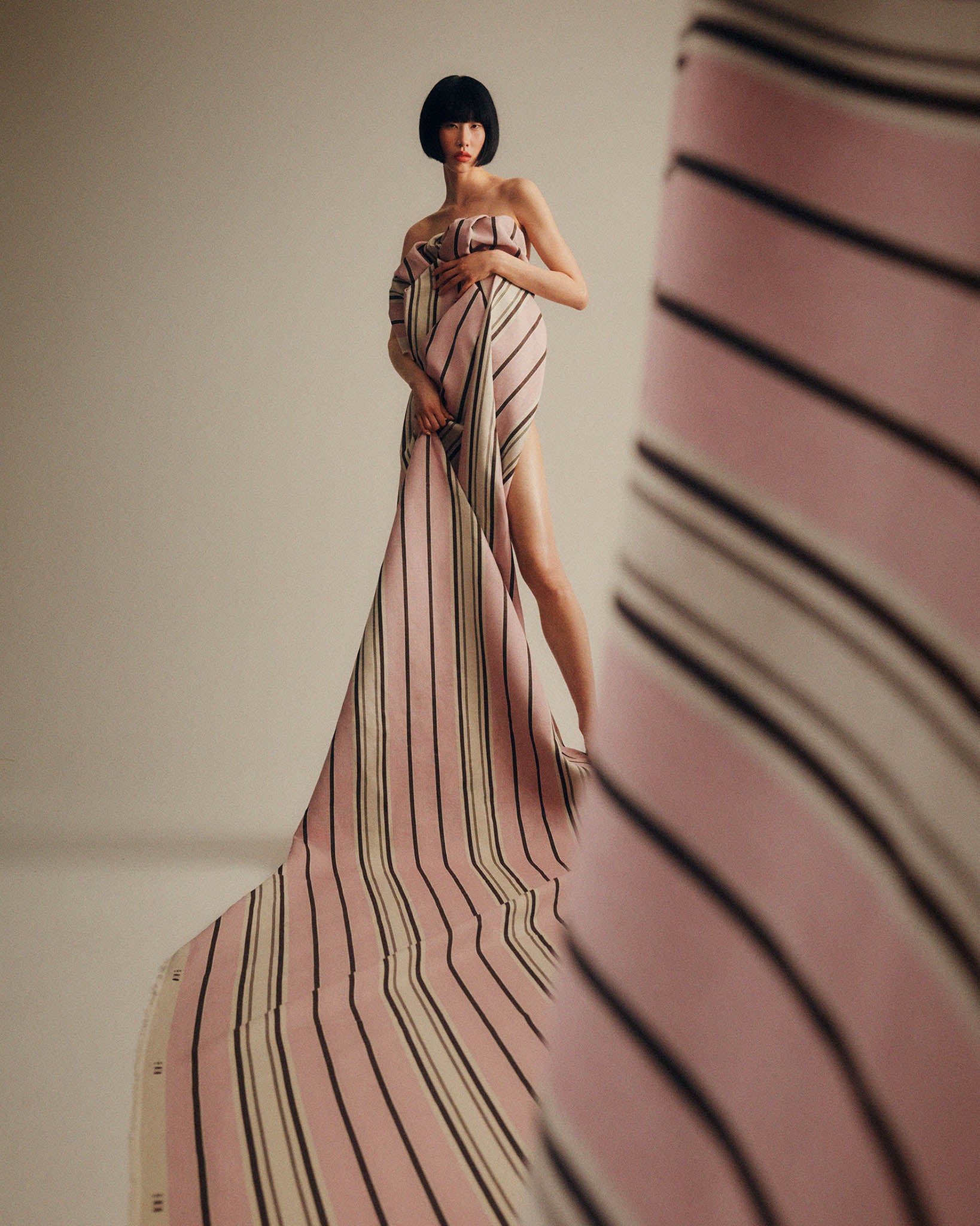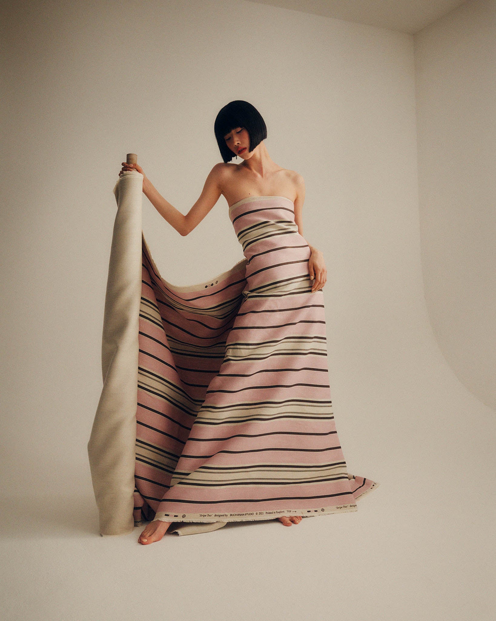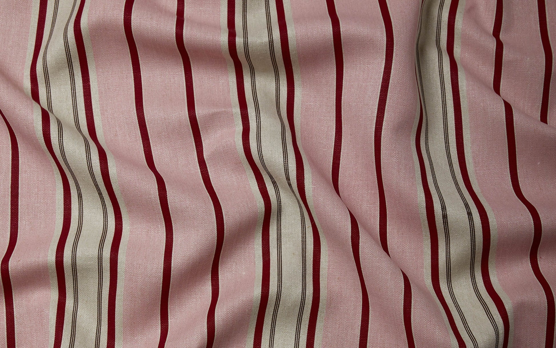 'Paris' combines a pale pink, with a deep burgundy red and a fine dark pencil stripe