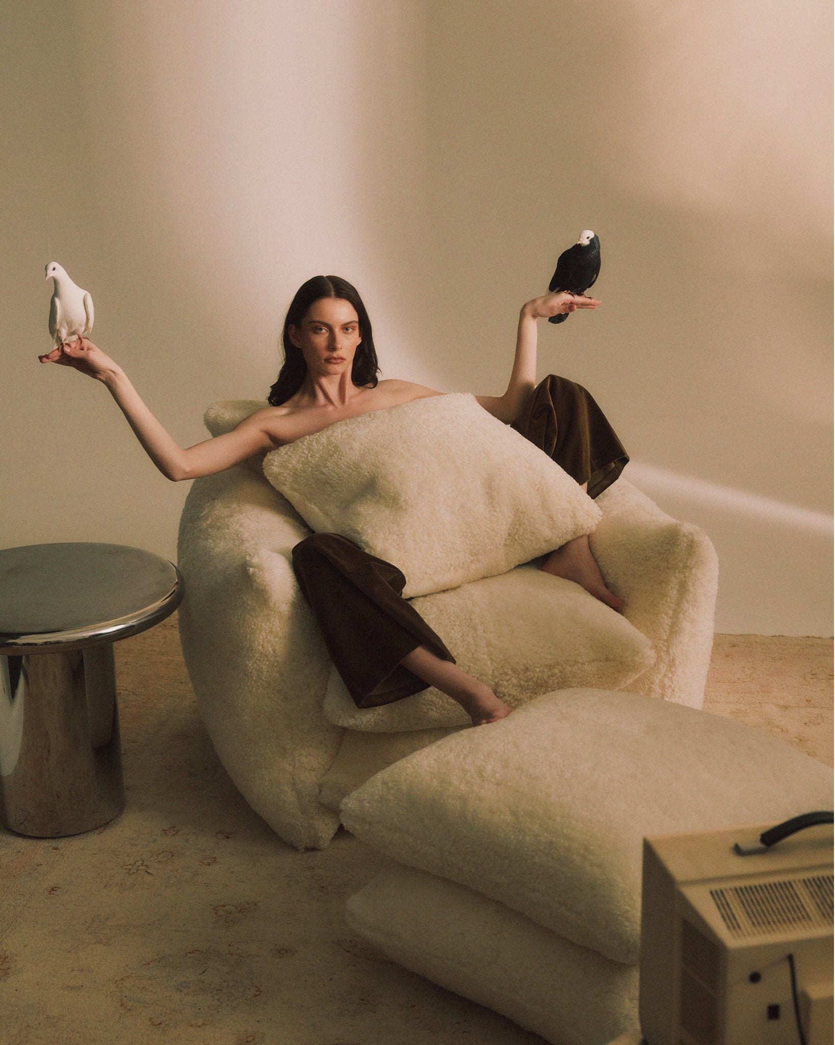 The Studio Chair takes on a new identity, in a beautiful cosy shearling available in two colours. 'Cloud' is a creamy off-white.