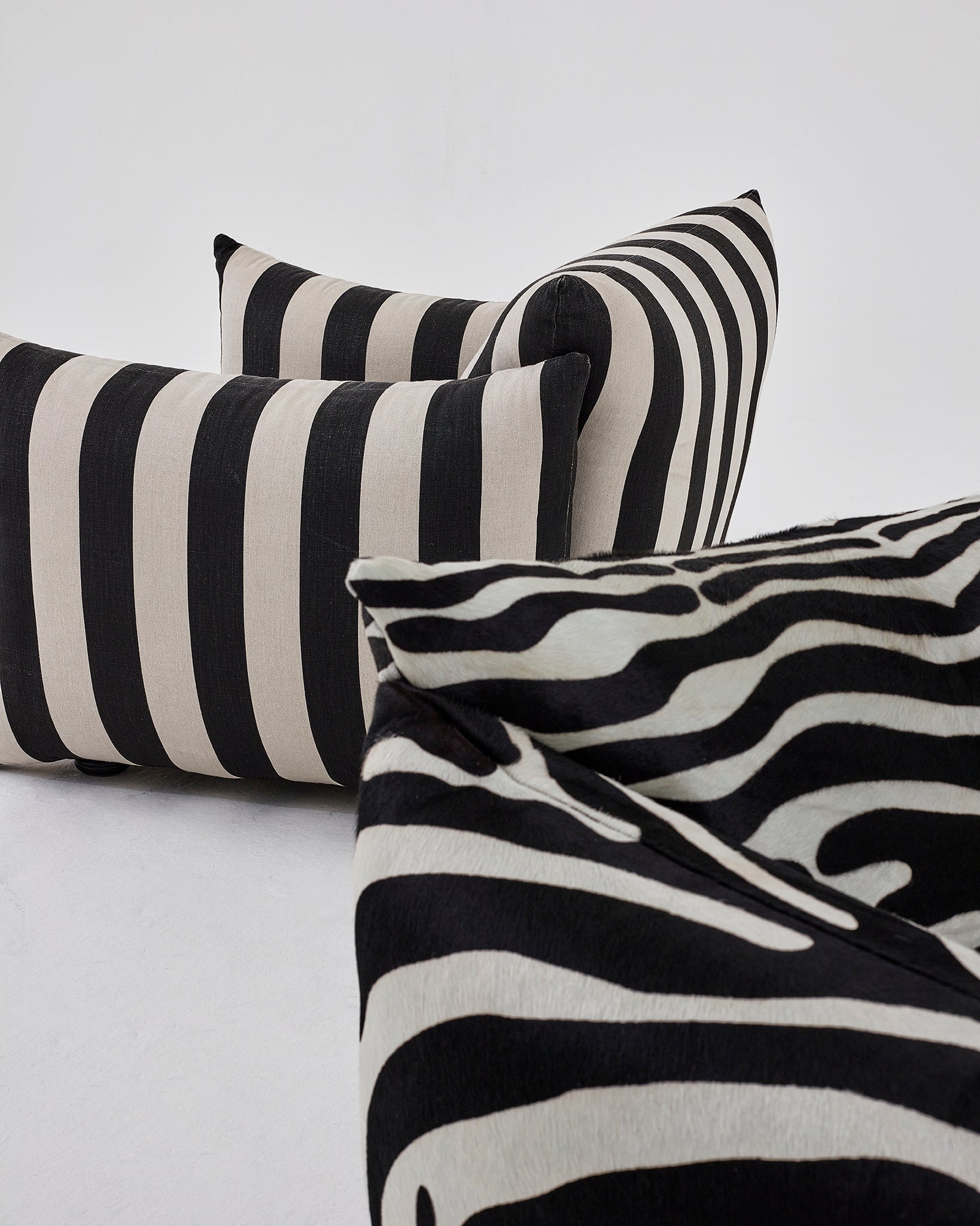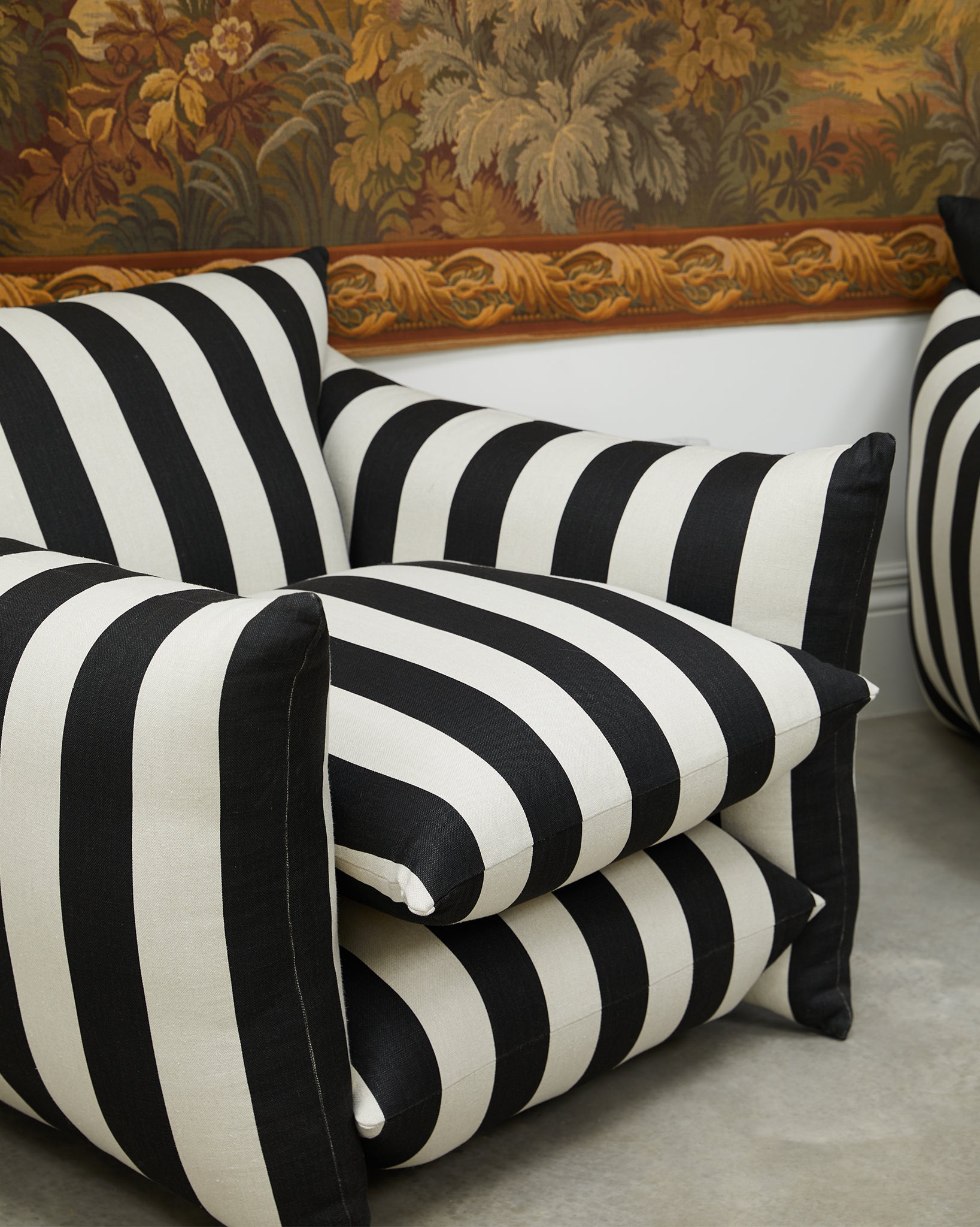 The classic stripe pattern has been designed by us, especially for the Studio Chair, and screen printed in London. "Jet" is a soft black.