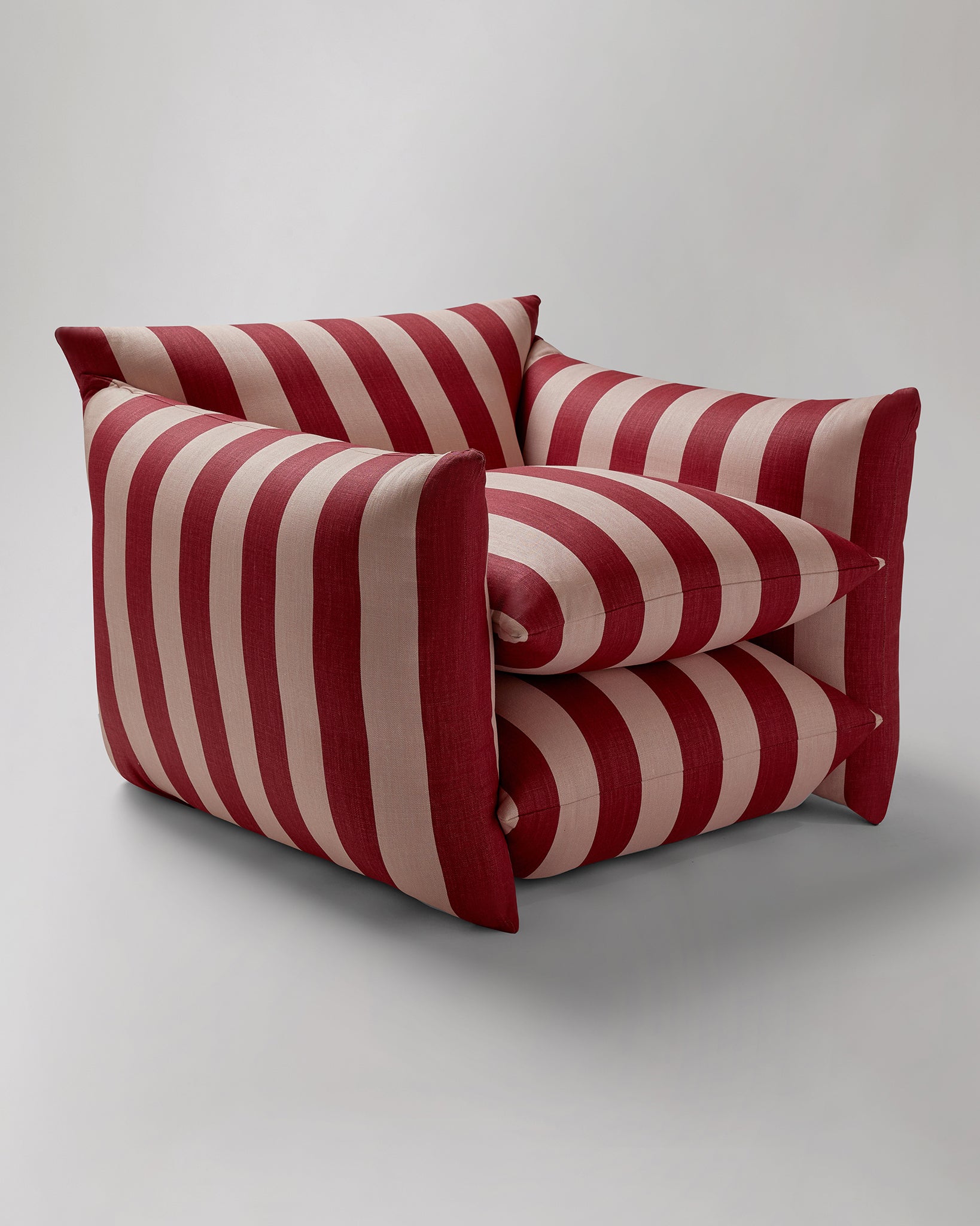 Inspired by the soft geometric shapes and fluid forms of 1970's furniture, the Studio Chair captures the essence of the free flowing and imaginative designs of the era whilst also feeling current and fresh. Designed with the aim of uniting expert craftsmanship and a strong aesthetic, the Studio Chair combines generous proportions with curved edges and bold design, giving the illusion of five cushions "floating" together, despite its sturdy frame. Expertly handmade in England using traditional techniques, the Studio Chair is upholstered in soft 100% Belgian Linen sourced direct from our trusted mill, which has been weaving flax to the highest standards for generations.