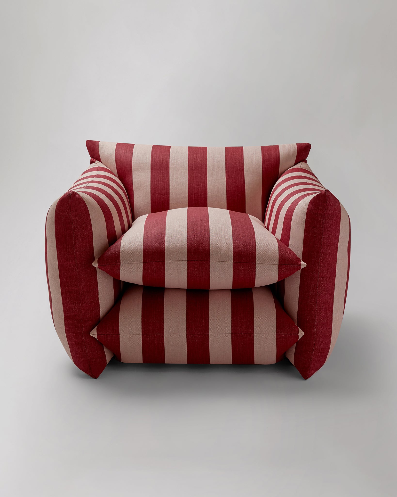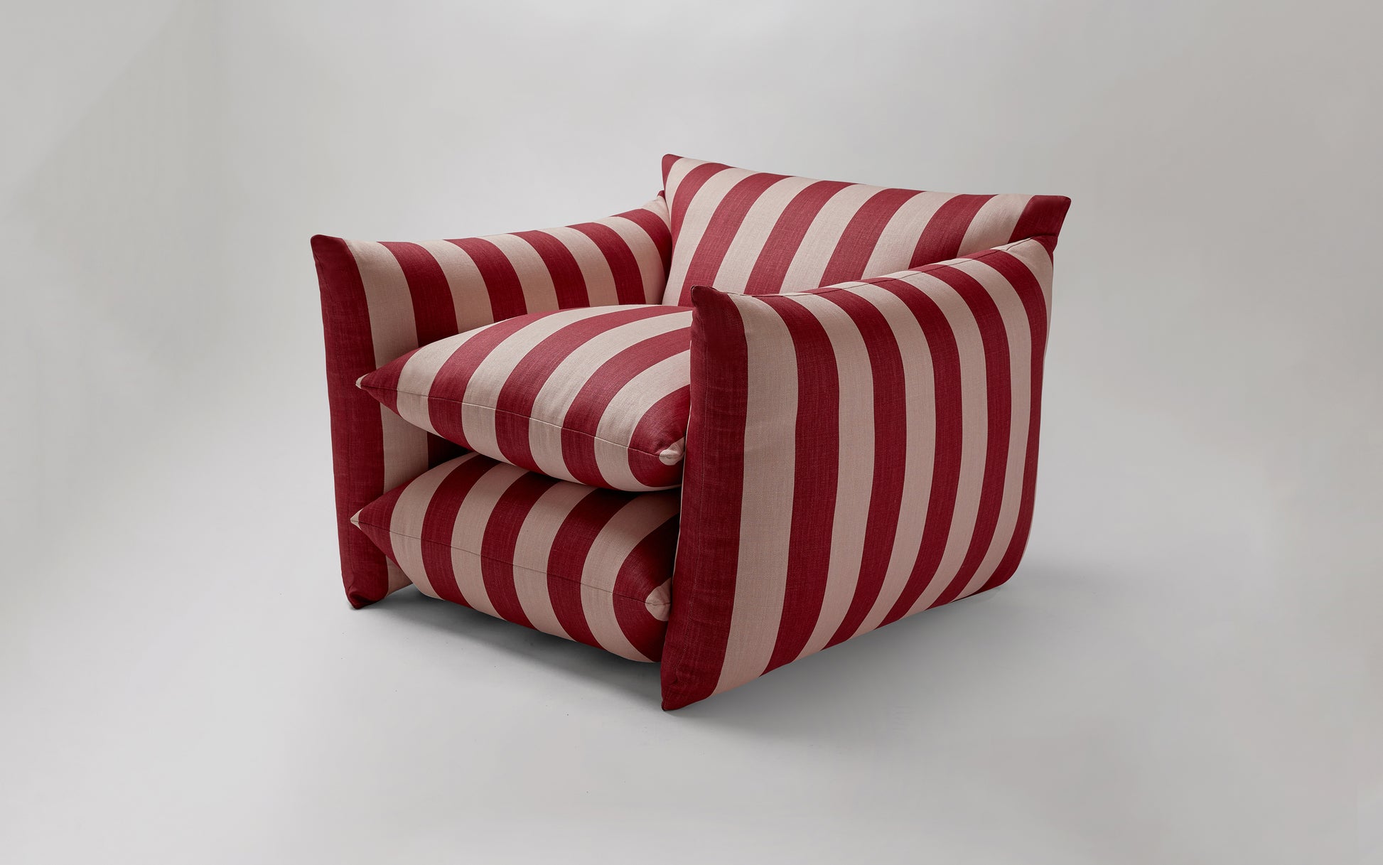 The classic stripe pattern has been designed by us, especially for the Studio Chair, and screen printed in London. Ruby & Rose combines a deeply rich and enigmatic red with a 'dirty' pale pink.