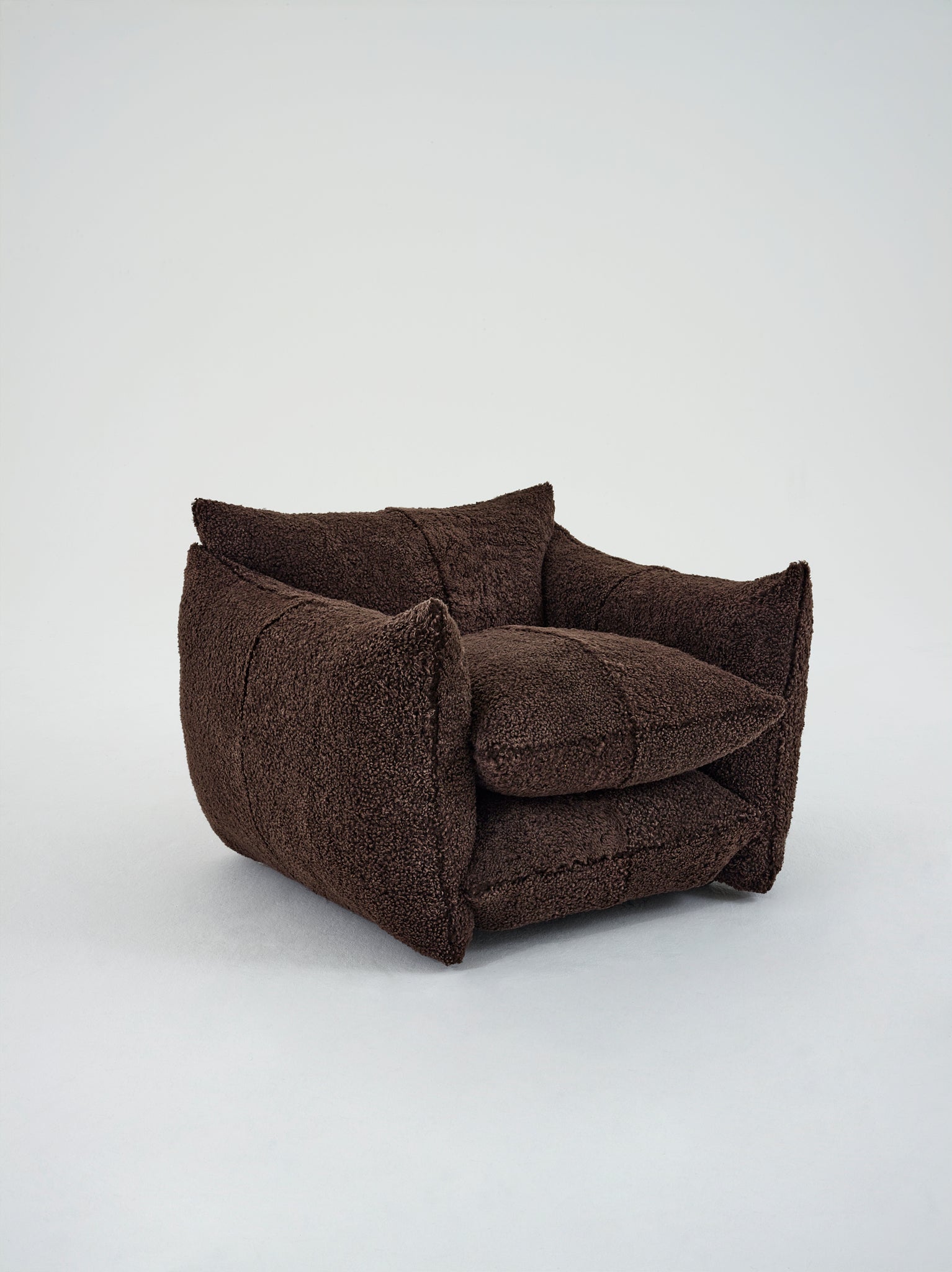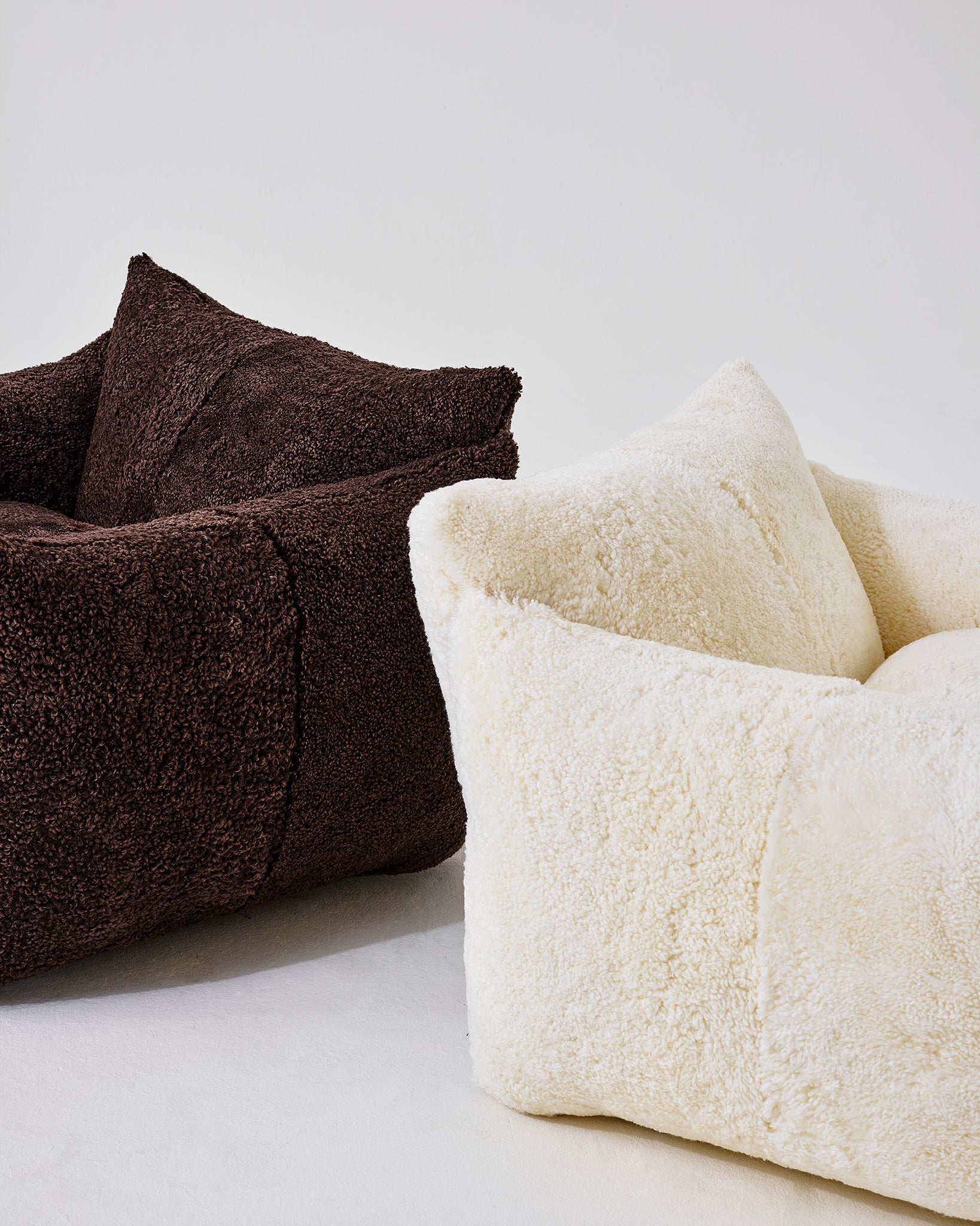 The Studio Chair takes on a new identity, in a beautiful cosy shearling available in two colours. 'Bear' is a rich dark brown.