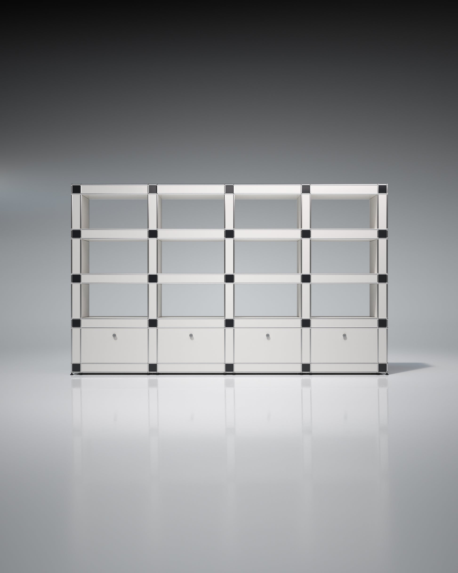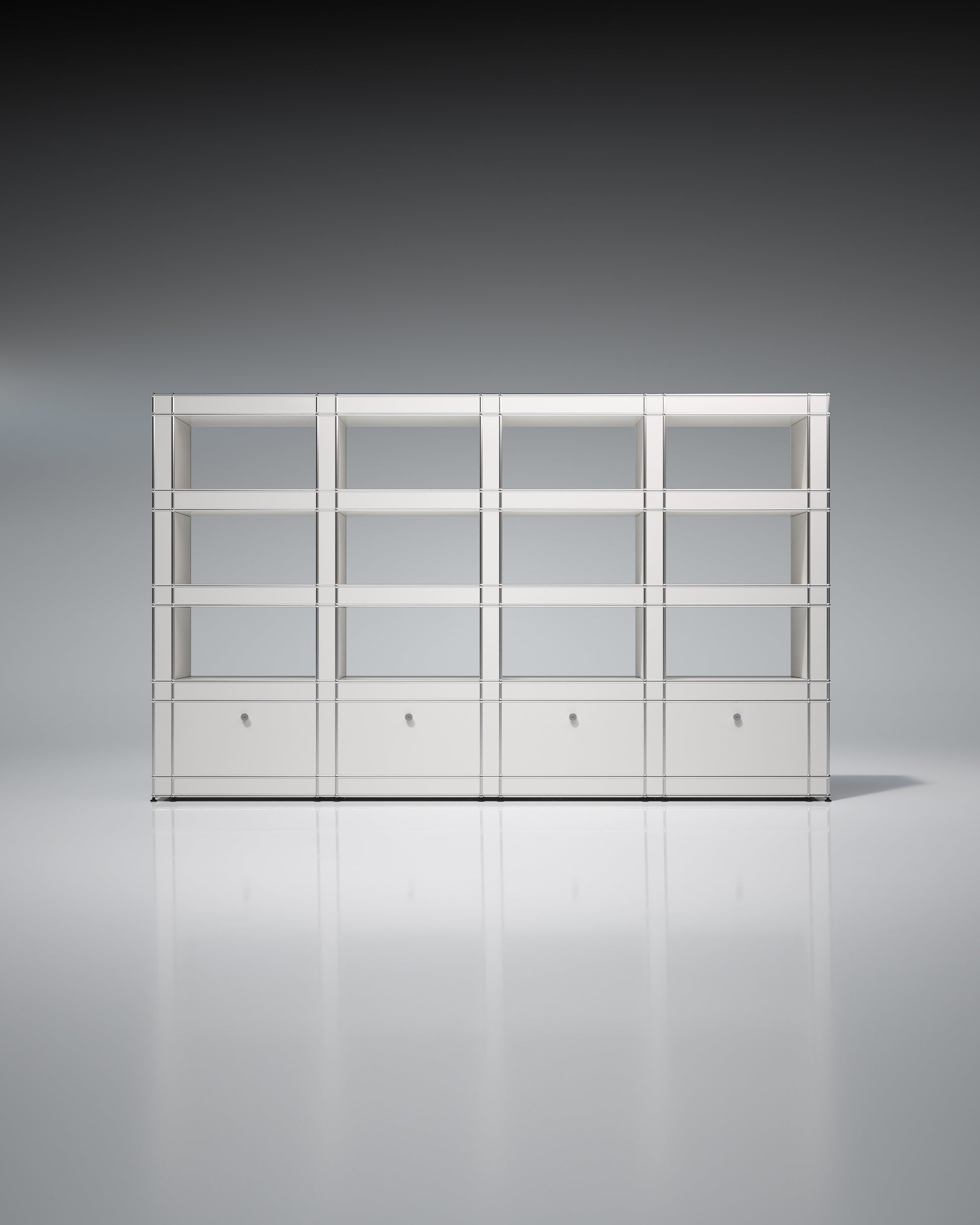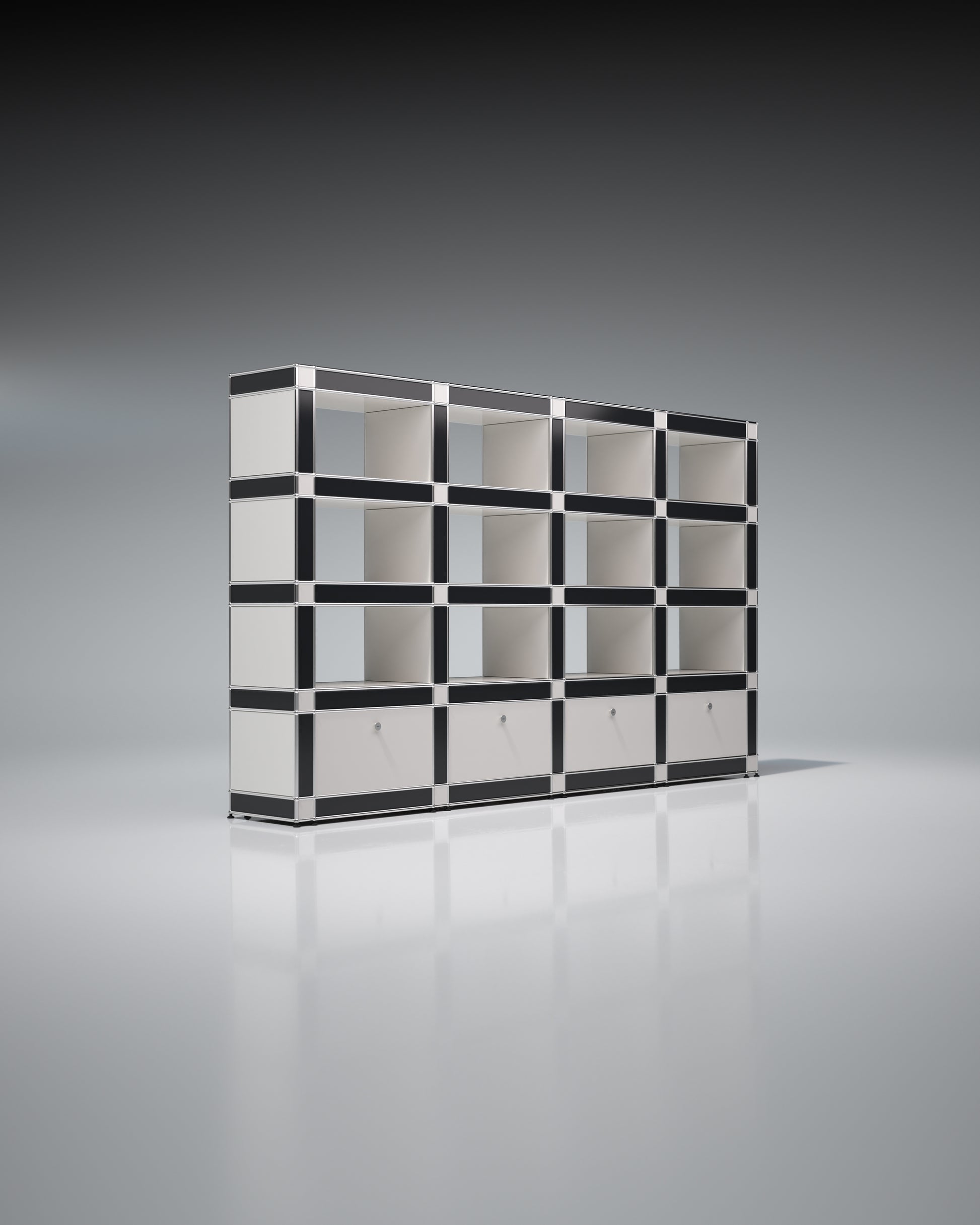 A new take on the classic USM bookcase. With a bolder, more substantial profile, this design offers a fresh and decorative take on USM’s signature minimalism. Ideal for the home, offices, or as a room divider for open-plan spaces, and balancing utility with style. Bespoke sizes and configurations are available to meet your specific shelving and storage needs.