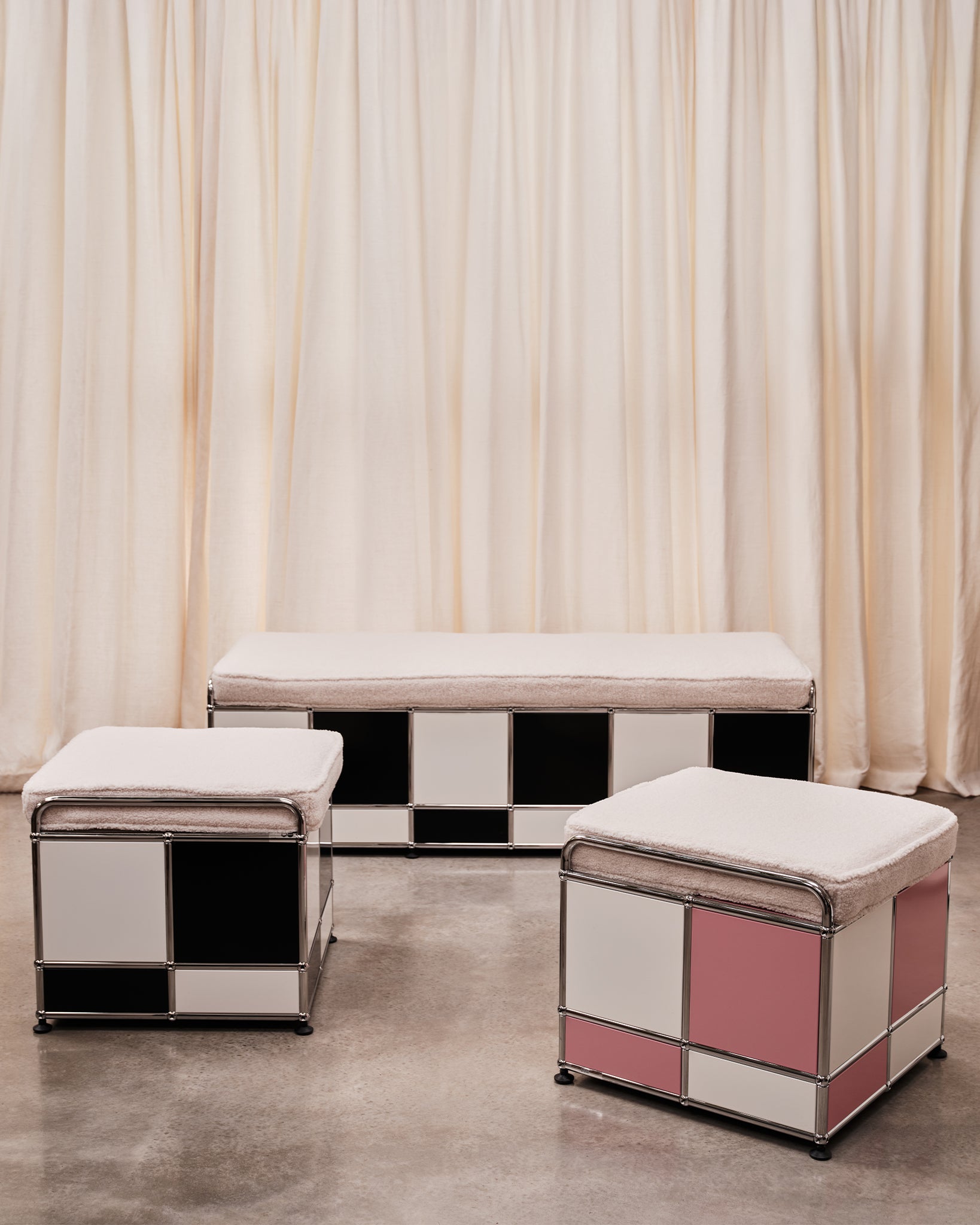 Choose from Buchanan Studio’s signature checkerboard pattern in classic black or the special edition BS Pink, featuring their distinctive half-check motif on the base- or opt for a more pared-back version for a subtler take. With a cushioned top in Buchanan’s iconic fabrics, The Stool brings both comfort and impact to any space. Whether used as a seat or simply as a graphic moment in a room, this flexible piece adds energy and style to living spaces or creative studios. Available with wheels or glides.